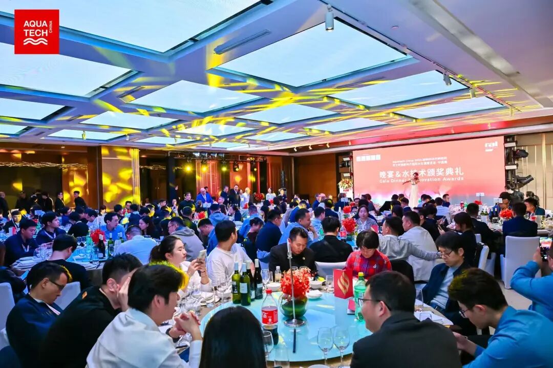晚宴在优雅的小提琴迎宾演奏中拉开帷幕,现场汇聚了来自全球的水技术专家、企业代表与行业领袖。颁奖环节后,与会嘉宾共同举杯,由Aquatech China团队代表致辞,致敬行业合作与创新精神。晚宴期间,传统“变脸”表演与西洋乐器演奏交替上演,象征水技术领域中西融合、共谋未来的美好愿景。