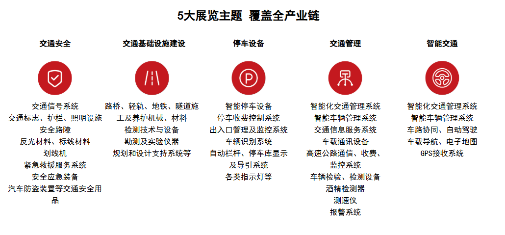 本届展览会涵盖国内外交通安全、停车设备、交通管理、智能交通以及交通基础设施建设五大板块,全面展示各大垂直领域的新理念、新技术、新成果,为行业搭建集产、学、研、商于一体的重要平台。